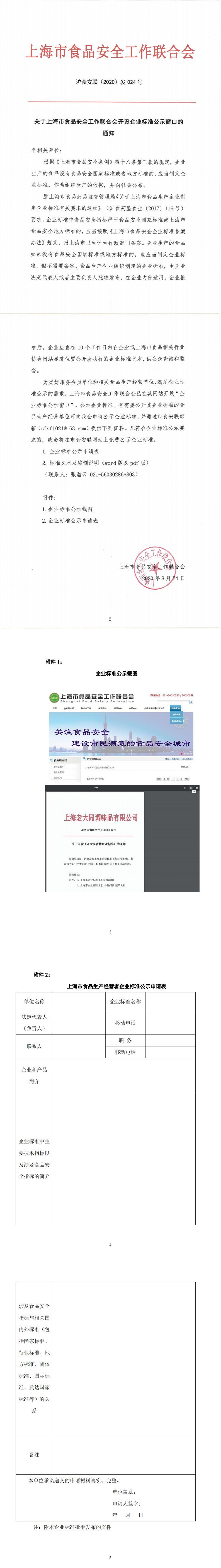 關于上海市食品安全工作聯合會開設企業標準公示窗口的通知.pdf