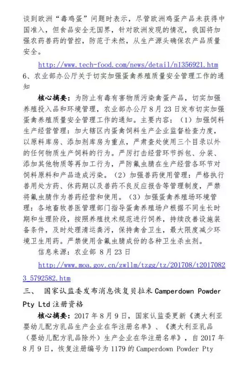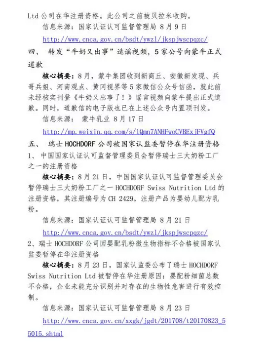 2017年8月食品安全輿情事件匯總